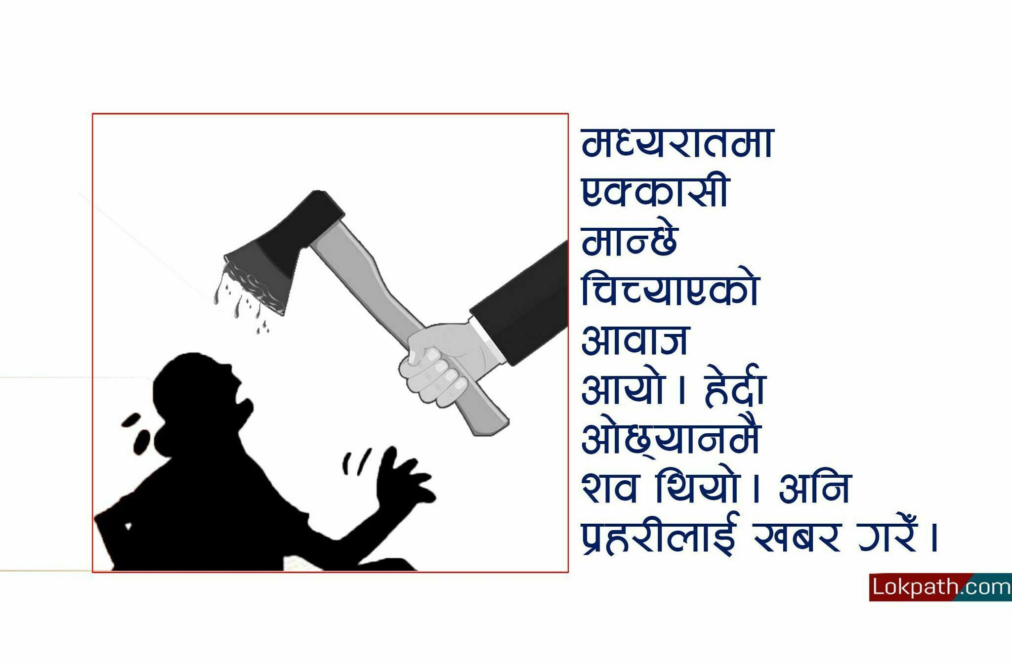 काठमाडौं । मध्यरातमा छोरा बुहारीको घरबाट मान्छे चिच्याएको आवाज आएपछि बुवा खड्गप्रसाद उभरकोटी छोरा धनबहादुर उभरकोटीको घरमा गए । घरमा पुग्दा उनले बुहारी दुर्गा पुर्कुटीको ओछ्यानमै हत्या भएको देखेपछि छिमेकीमा हारगुहार गरी प्रहरीलाई खबर गरे ।
