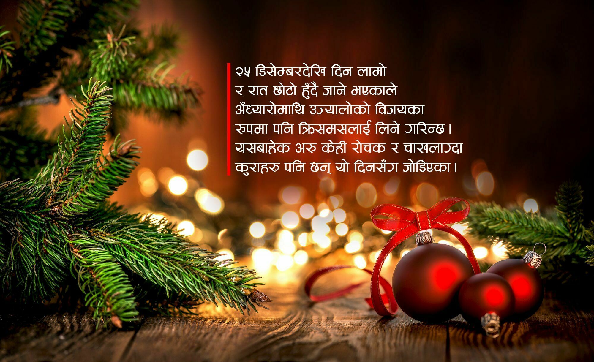 काठमाडौं । आज क्रिसमस डे हो । यो चाड नेपालको होइन तर, आजभोलि यहाँ पनि निकै महत्वका साथ मनाइन्छ । क्रिसमस नजिकिँदै गर्दा पसलहरुमा देखिने सान्टा क्लसको लुगा र टोपी, क्रिसमस ट्री र त्यसलाई सजाउने सामाग्रीहरु आदिले पनि यो कुराको पुष्टि गर्दछन् ।