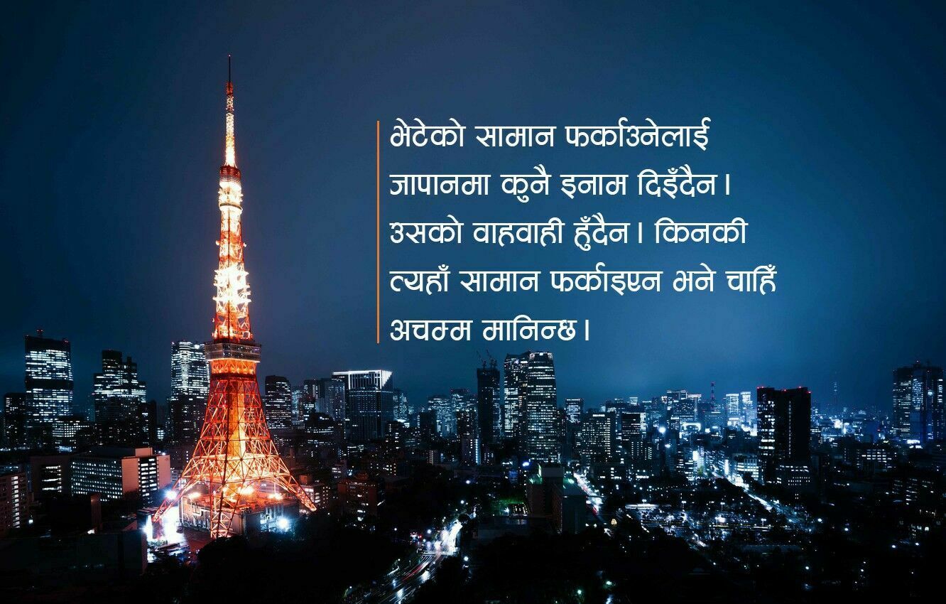 जापानमा त्यसरी सामान फर्काउनेलाई कुनै इनाम दिइन्छ वा उसको वाहवाही गरिन्छ भन्ने सोच्नुहुन्छ भने तपाई गलत हुनुहुन्छ ।