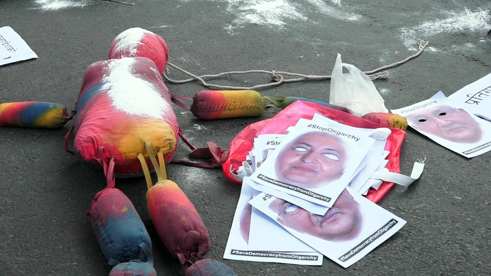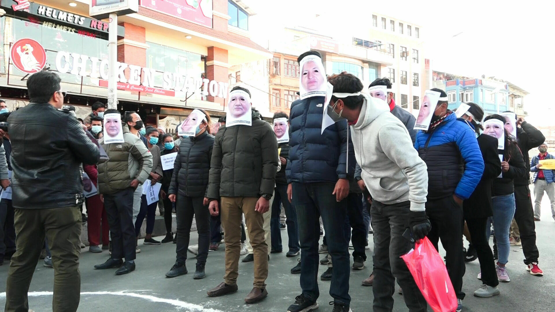 प्रदर्शनमा सहभागिहरुले शंख बजाएर विरोध गरेका छन् । ‘प्रतिगमनविरुद्ध बृहत नागरिक आन्दोलन’ लेखिएको ब्यानर सहित सहभागिहरुले शंख बजाउँदै संसद विघटनको विरोध गरेका हुन् ।