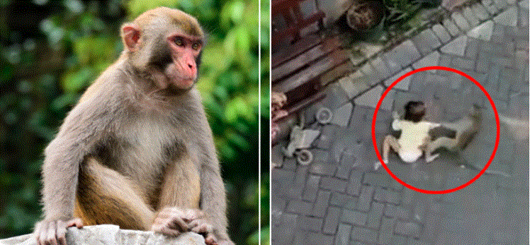बाइक चलाएर आएको बाँदरले बालकलाई लगेपछि… (भिडियोसहित)