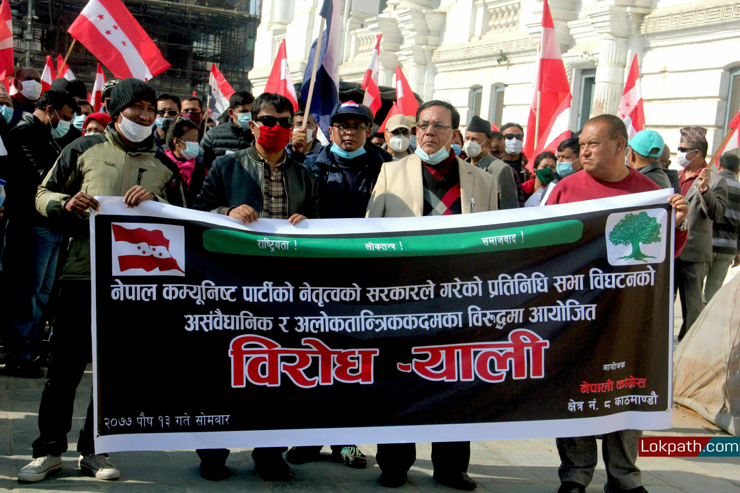 संसद विघटनविरुद्ध सडकमा निस्कियो कांग्रेस (फोटोहरु हेर्नुहोस्)