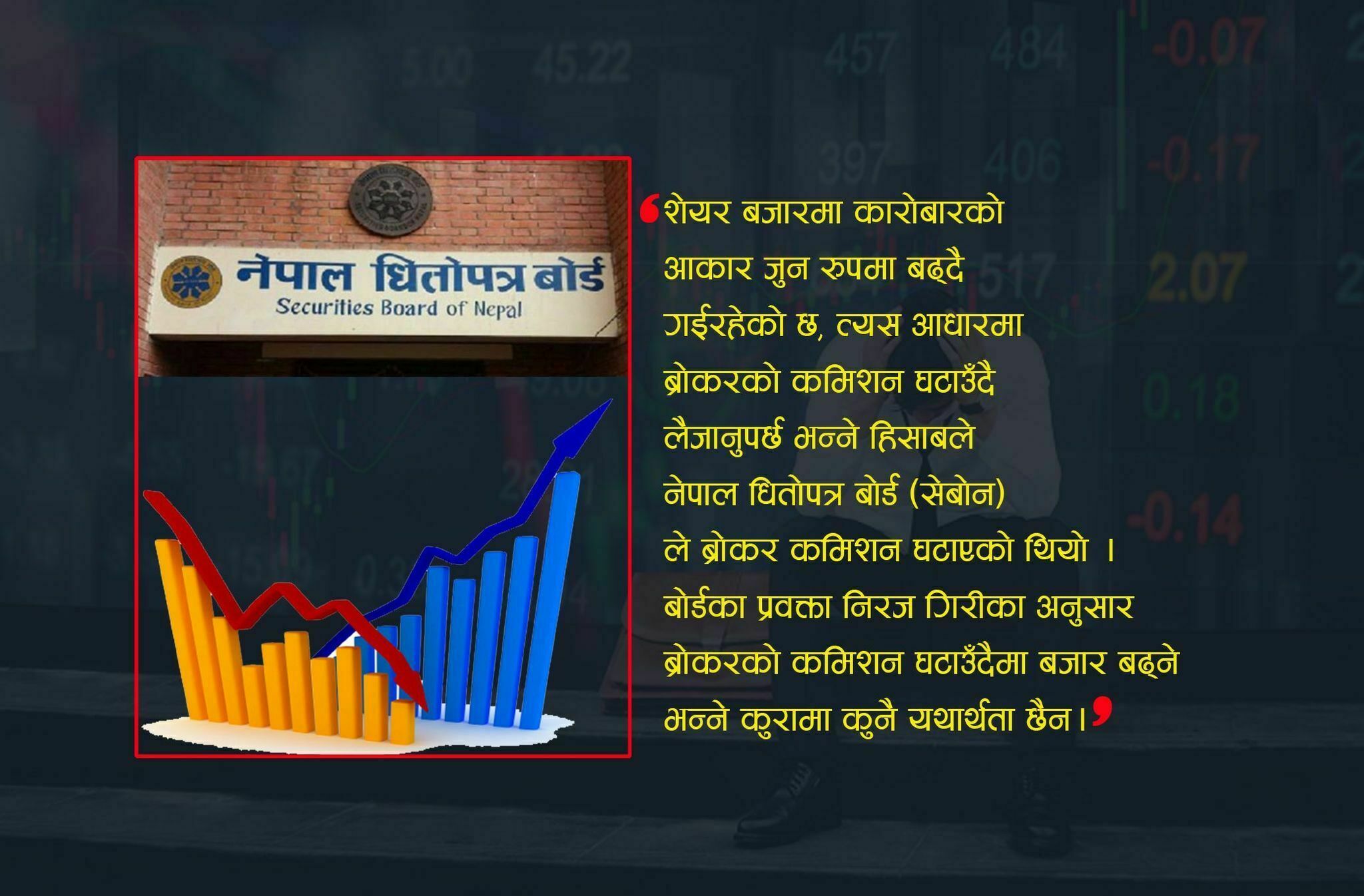 सेबोनले कारोबारको आकारका आधारमा ३३ प्रतिशत ब्रोकर कमिशन घटाएको थियो । ब्रोकर कमिशन घटेपछि खुलेको शेयर बजारमा सन्तोषजनक कारोबार भएको छैन । आइतबार र सोमबार सेयर बजारमा निराशाजनक कारोबार भएको देखिएको छ ।