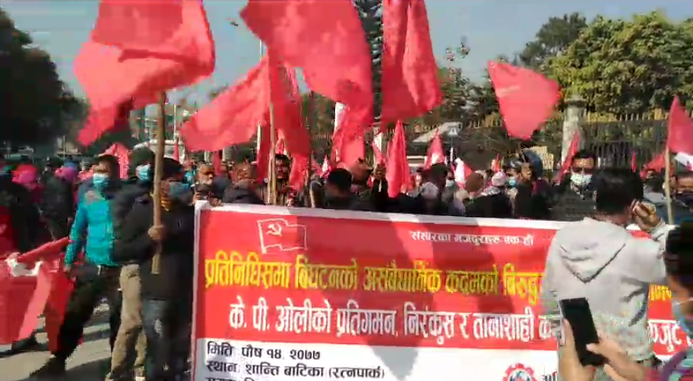 काठमाडौं । संसद विघटनविरुद्ध सत्तारुढ नेपाल कम्युनिष्ट पार्टी (नेकपा) को प्रचण्ड माधव नेपाल समूहले काठमाडौंका विभिन्न ठाउँहरुमा र्याली निकालेको छ ।