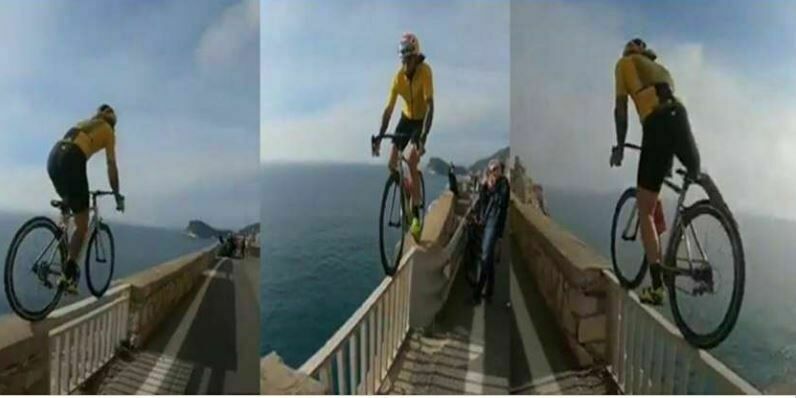 उक्त भाइरल भिडियोमा एक व्यक्ति समुन्द्रको किनारमा लगाइएको रेलिङमा साइकिल चलाईरहेको देख्न सकिन्छ ।