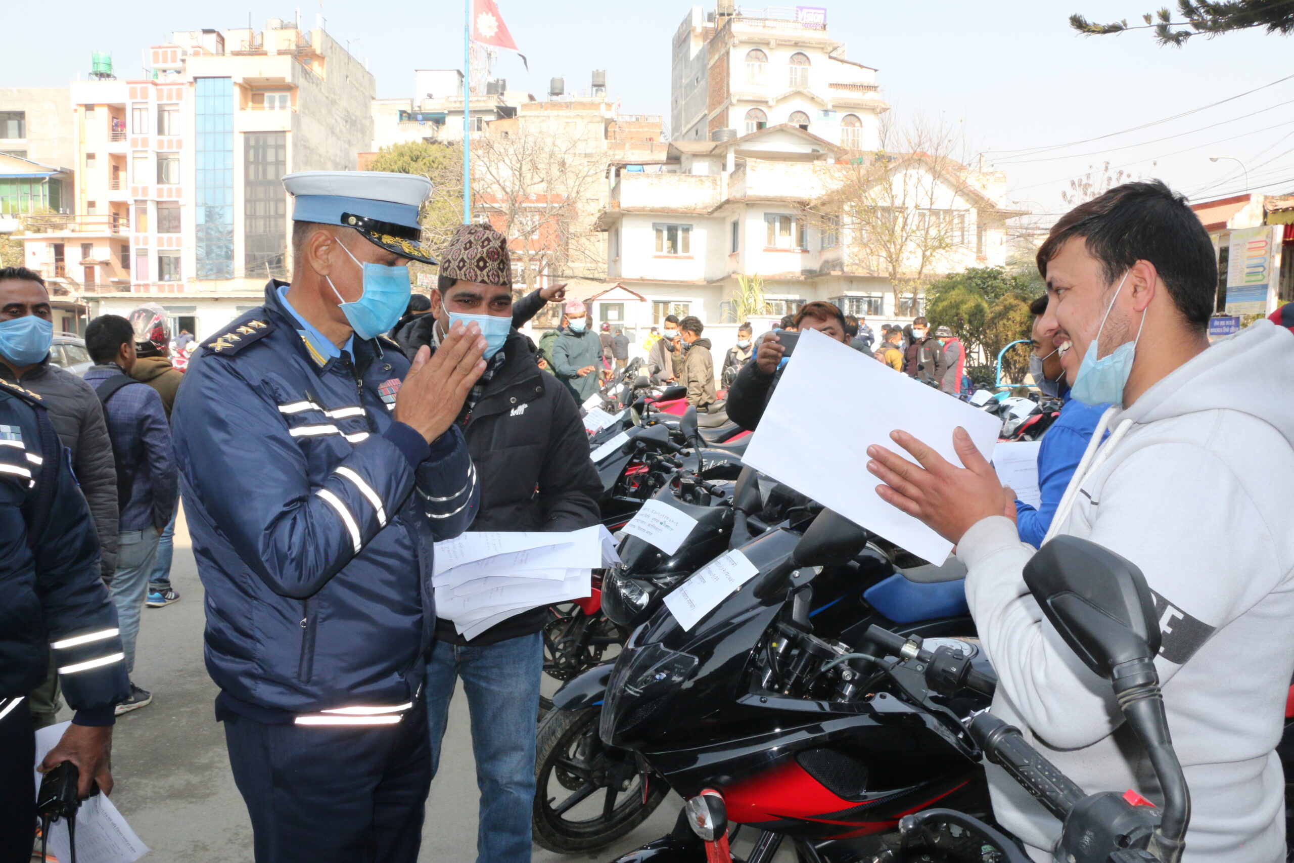 ट्राफिक प्रहरी महाशाखाको पीडित सहायता ईकाइबाट सादा पोसाकमा खटिएको ट्राफिक प्रहरी टोलीले उपत्यकाका बनेपा काभ्रे, कपन, धुम्वाराही, कलंकी, बनस्थली, गंगबु, बौद्ध, थापाथली, ट्रमा सेन्टर, सिनामंगल, जोरपाटी, ठमेल, मुलपानी, कलंकी, ट्याङ्लाफाट, कालोपुल, कमलविनायक, घट्टेकुलो, जरंखु, चावहिल, पुरानो बानेश्वर र बबरमहल लगायतका स्थानबाट हराएका मोटरसाइकलको खोजी गरी आज सम्बन्धित धनीलाई जिम्मा लगाएको हो ।