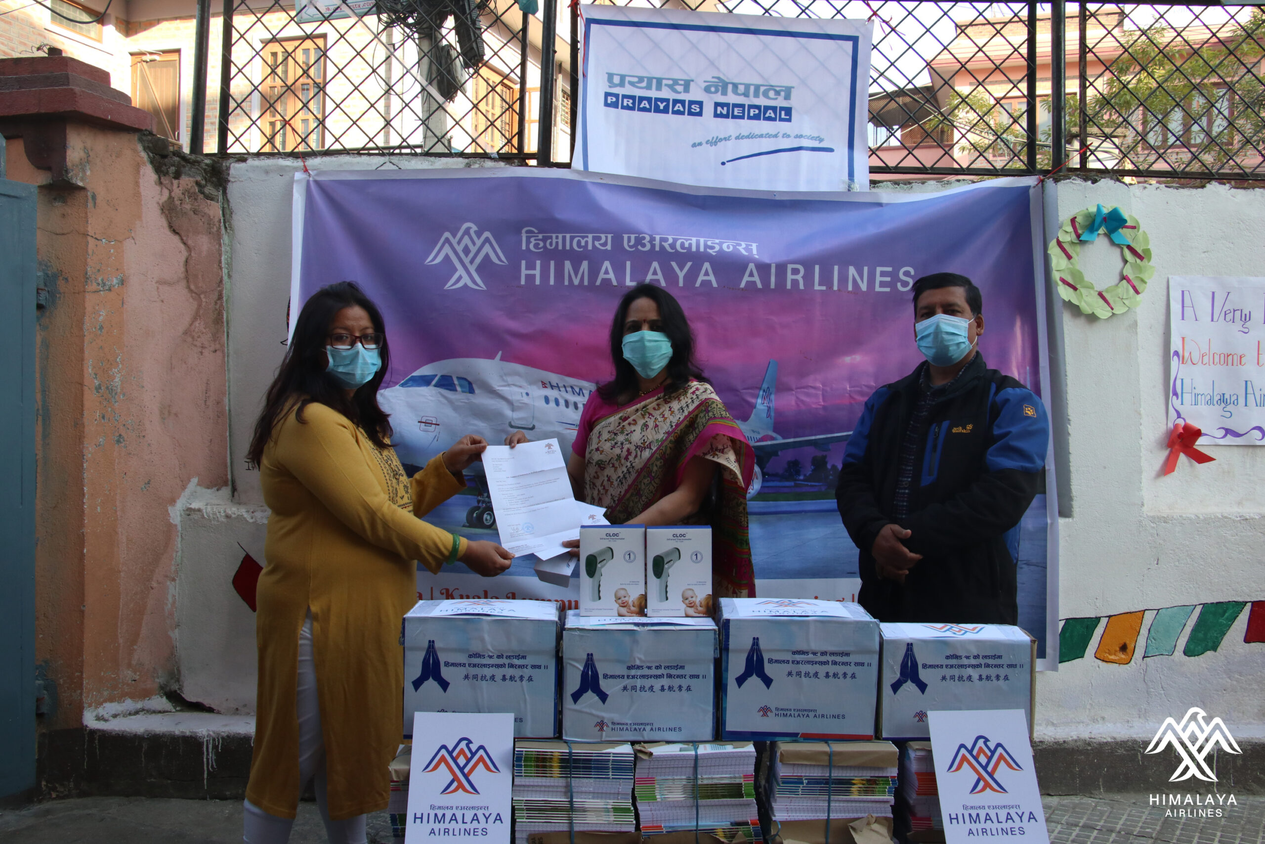 सन् २०२० को डिसेम्बर ३१ मा प्रयास नेपालको छोटो अवलोकन भ्रमणका क्रममा हिमालय एअरलाइन्सका पदाधिकारीहरूले प्रयास नेपालका पदाधिकारीहरूलाई शैक्षिक र चिकित्सा सामाग्रीहरू कोभिड–१९ का सम्पूर्ण सुरक्षा मापदण्ड अपनाएर हस्तान्तरण गरेको एअरलाइन्सले जनाएको छ । प्रदान गरिएका सामाग्रीहरुमा १,६५० वटा कपी, दुई इन्फ्रारेड थर्मामीटर, २ बोतल ह्याण्ड सेनिटाइजर र १,००० थान फेस मास्क समावेश थिए ।