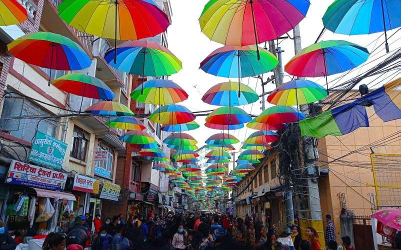 काठमाडौं । काठमाडौंको न्यूरोडमा रहेको ‘अम्रेला स्ट्रिट’ हटाइने भएको छ । कोरोना कहरका कारण व्यापार व्यवसाय ठप्प भएका कारण मानिसको चहलपहल बढाउने र खस्किएको व्यापार उकास्ने उदेश्यले रंगीचङ्गी छाताहरु राखेर संकटा मन्दिर जाने गल्ली सिँगारिएको थियो ।