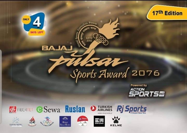 काठमाडौं । सत्रौँ संस्करणको ‘पल्सर स्पोर्टस अवार्ड’ आगामी मंगलवार वितरण गरिने भएको छ । आयोजक नेपाल खेलकूद पत्रकार मञ्च (एनएसजेएफ)ले ‘पिपल्स च्वाइस’, वर्ष पुरुष, महिला, युवा र वर्ष प्रशिक्षक विधाको मनोनयन सार्वजनिक गरिसकेको छ ।