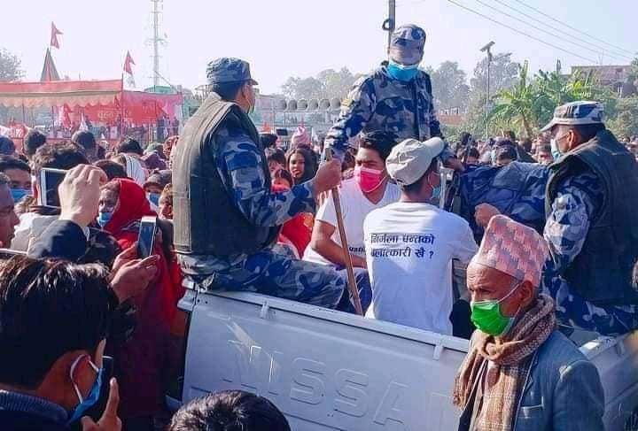 धनगढी । ‘निर्मला पन्तको बलात्कारी खै ?’ लेखिएको टिसर्ट लगाउने युवाहरुलाई प्रहरीले अभिभावकको जिम्मा लगाएको छ । धनगढीस्थित खुला मञ्चमा आयोजना भएको नेकपा ओली समूहको जनसभामा ‘निर्मला पन्तको बलात्कारी खै ? ’ लेखिएको टिसर्ट लगाउने ७ जना युवालाई प्रहरीले नियन्त्रणमा लिएको थियो ।