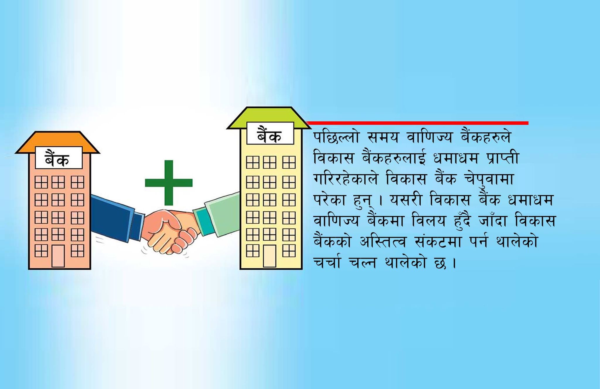 पछिल्लो समय वाणिज्य बैंकहरुले विकास बैंकहरुलाई धमाधम प्राप्ती गरिरहेकाले विकास बैंक चेपुवामा परेका हुन् । यसरी विकास बैंक धमाधम वाणिज्य बैंकमा विलय हुने हो भने विकास बैंकको अस्तित्व के हुन्छ भन्ने प्रश्न पनि उठ्न थालेको छ ।