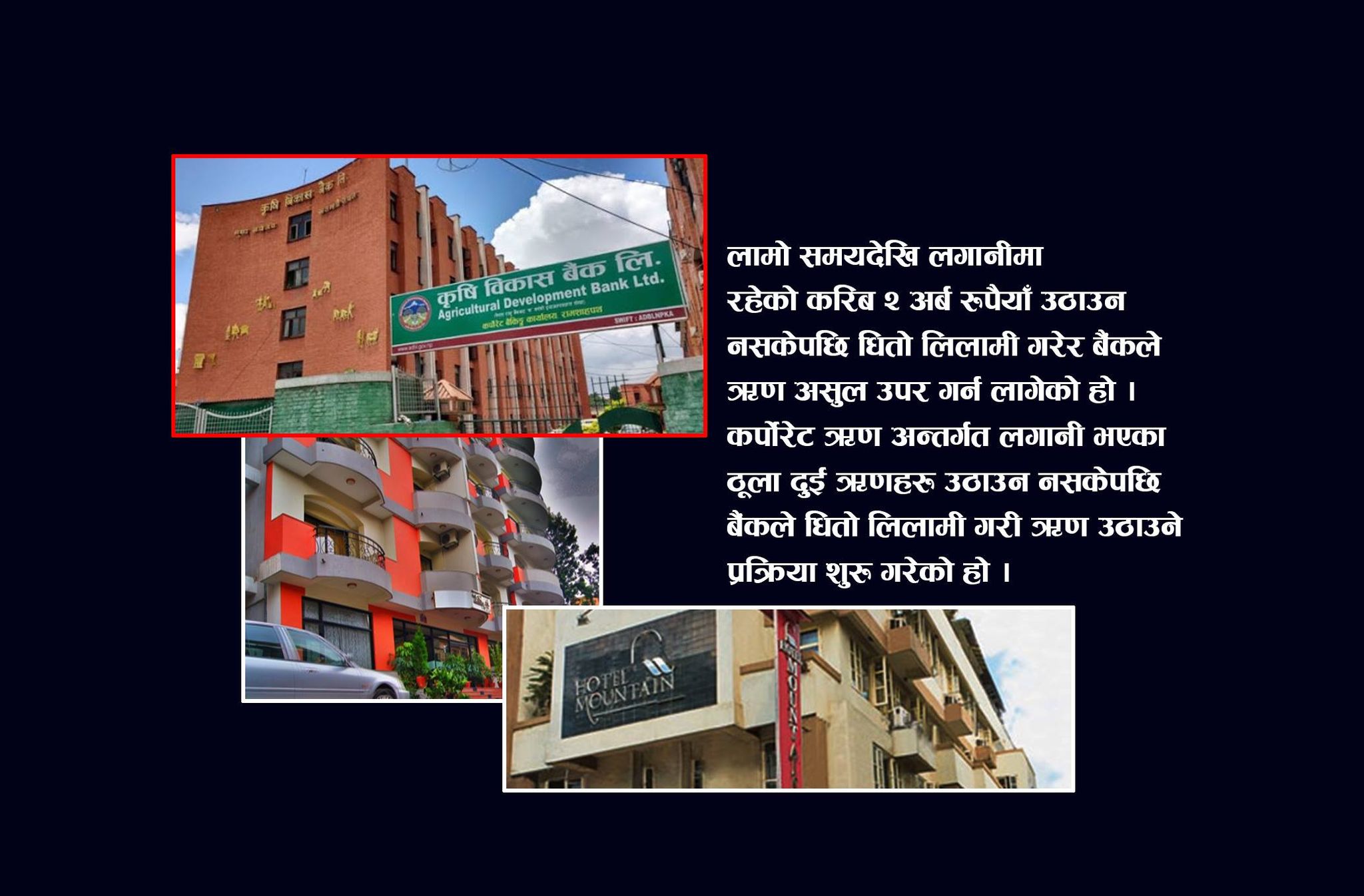 काठमाडौं । लगानी गरेको लामो समयसम्म पनि बैंकको ऋण नतिरेपछि कृषि विकास बैंक कर्जा असुलीमा खरो उत्रिएको छ ।