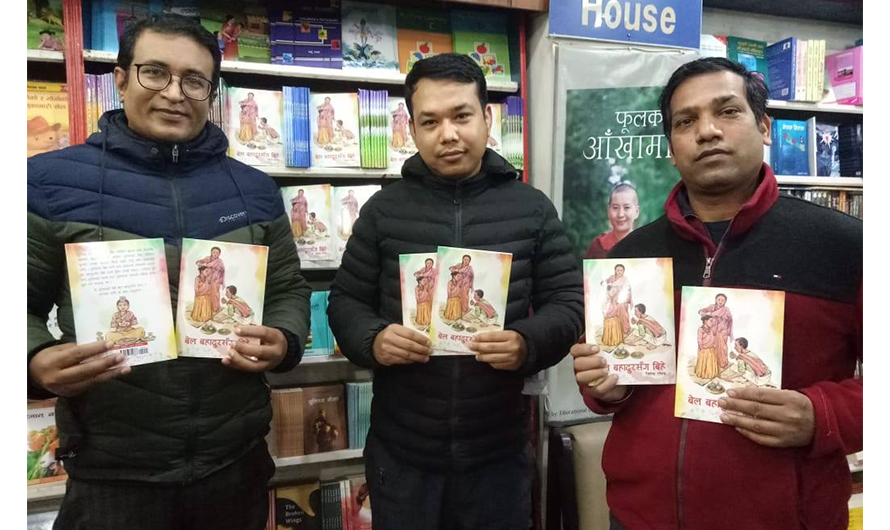 काठमाडौँ- साहित्यकार जितेन्द्र रसिकको बालचित्र कथा ‘बेलबहादुरसँग बिहे’ बजारमा आएको छ । नेवार संस्कृति र परम्परामा आधारित ‘इहि संस्कृति’ मा प्रयोग हुने बेललाई प्रतिक बनाएर तयार पारिएको पुस्तकको एडुकेशनल पब्लिशिङ् हाउसका रमण राउट, शितल सुकुभटु र कथाकार रसिकले लोकार्पण गरेका हुन् ।