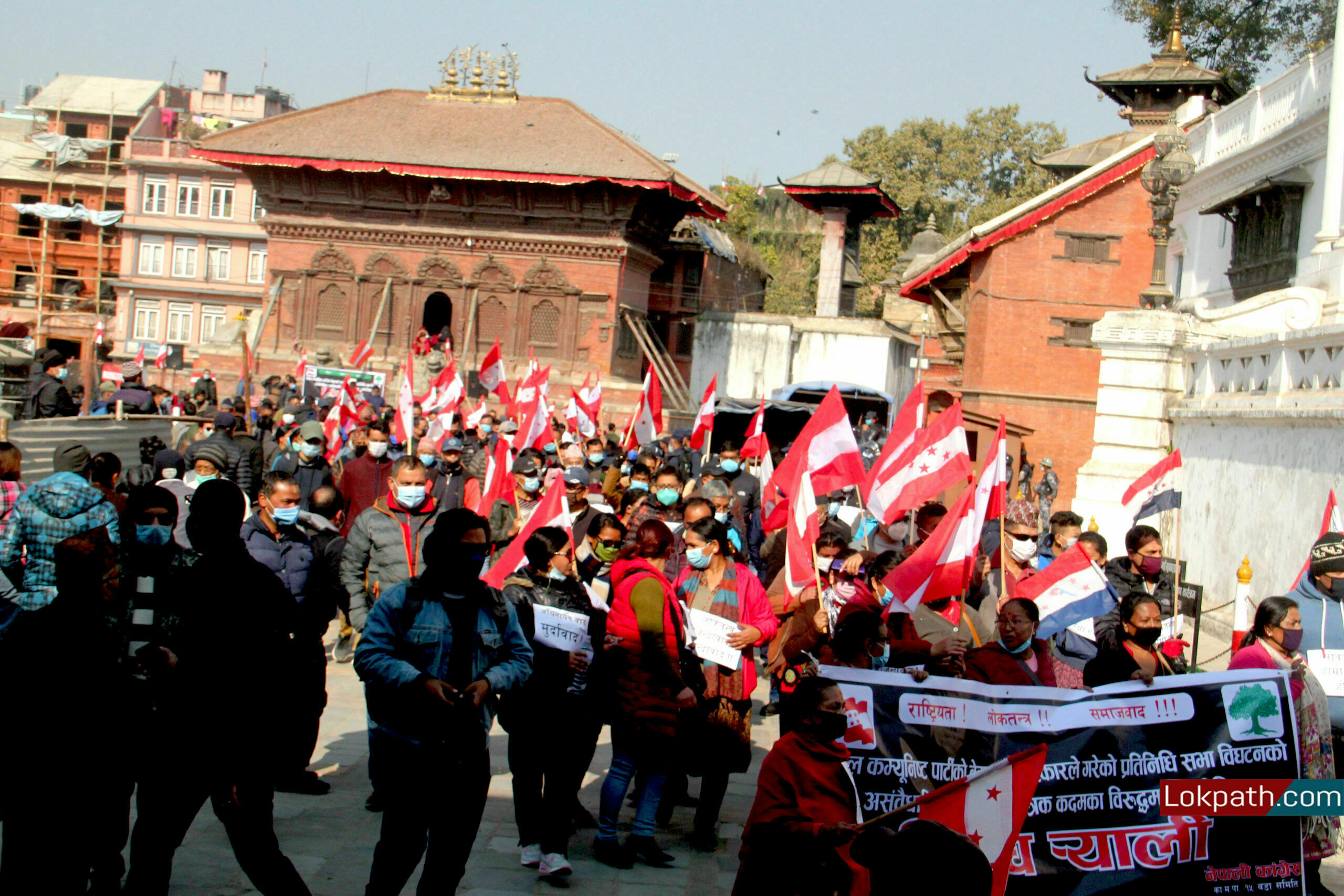देशभर प्रदर्शन गर्न लागे पनि कांग्रेस अझै संसद् पुन: स्थापना या चुनाव भन्नेबारे दोधारमा छ। पार्टी सभापति शेरबहादुर देउवा चुनावमा जान इच्छुक देखिएका छन् भने वरिष्ठ नेता रामचन्द्र पौडेलले संसद् पुन: स्थापनामा लाग्नुपर्ने अडान राखिरहेका छन्।