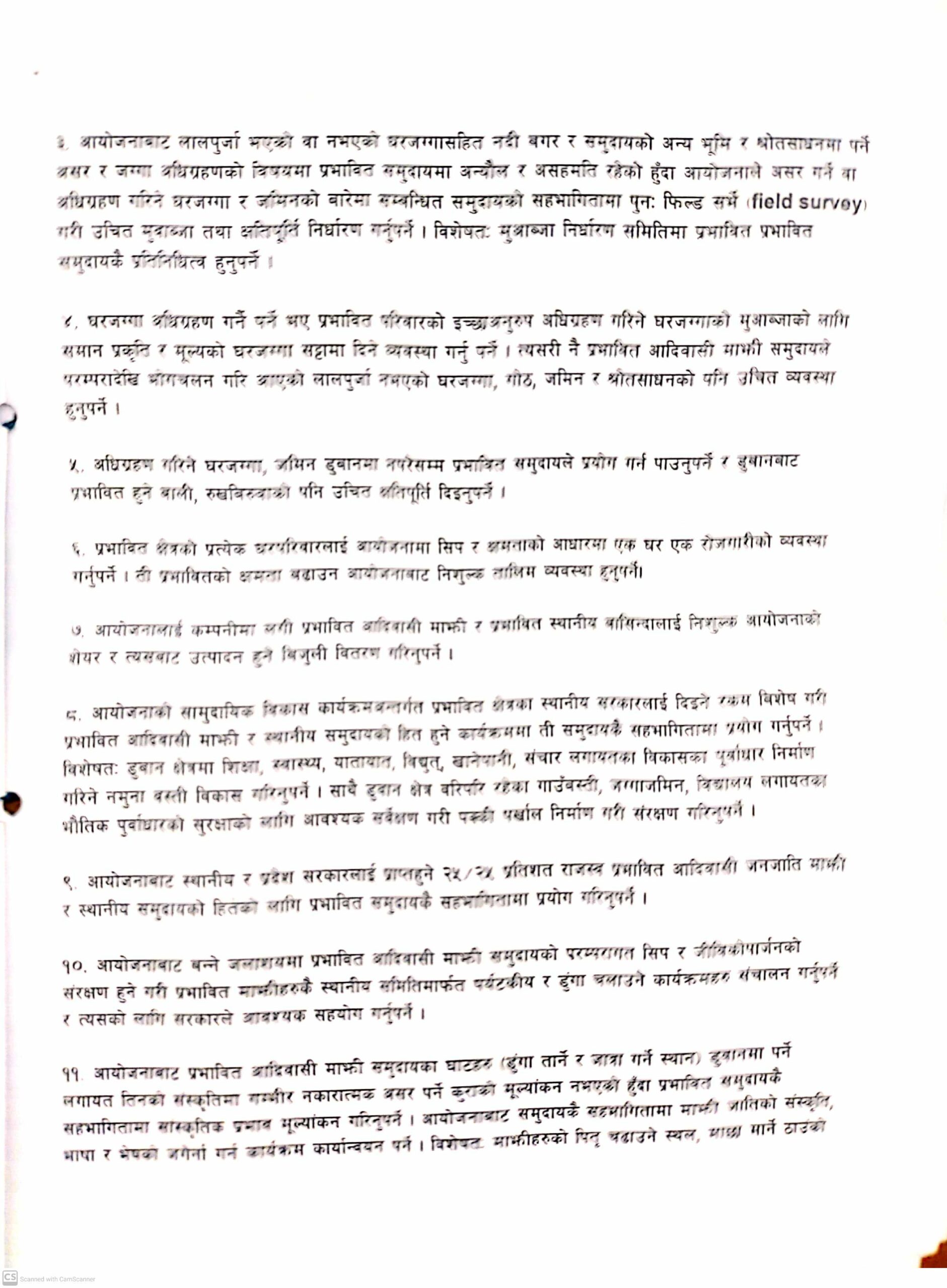 प्रभावित क्षेत्रका माझी समुदायहरूद्धारा हस्ताक्षरित ज्ञापनपत्रमा विकासको नाममा हामीले परम्परादेखि भोगचलन गर्दै आएको हाम्रो पुर्ख्यौली जग्गा जमिन, नदी खोला र बगरक्षेत्र, घाट आदि डुबानमा परी हामी विस्थापित हुनुपर्ने र हाम्रो धार्मिक, सांस्कृतिक र सामाजिक जीवनमा प्रतिकुल असर पर्ने उल्लेख गरेका छन् ।