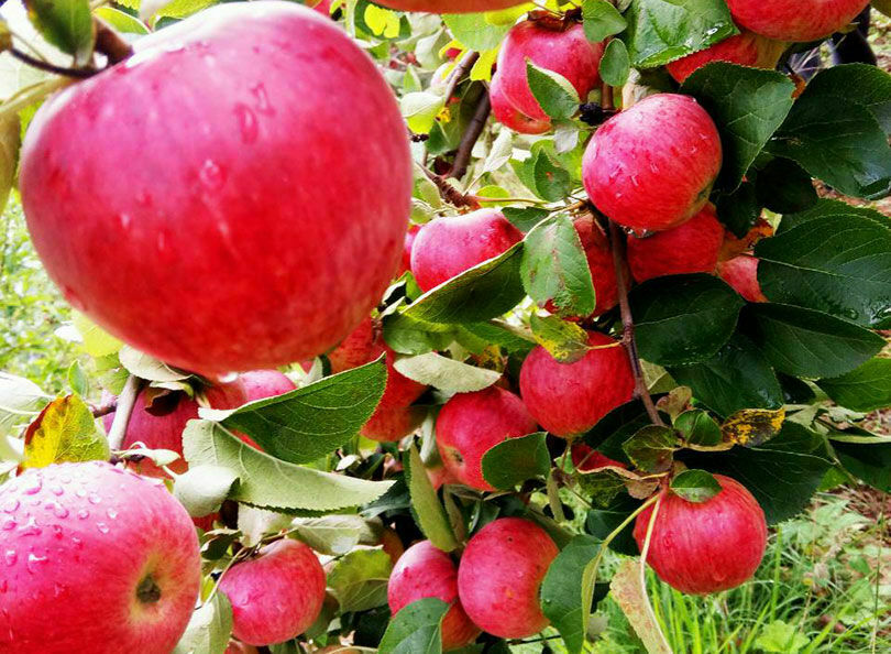 जिल्लामा लगभग एक हजार ४०० हेक्टर क्षेत्रफलमा स्याउ लगाइएको छ । प्रधानमन्त्री कृषि आधुनिकीकरण परियोजना स्याउ जोन कार्यक्रम जोमसोमका सूचना अधिकारी यमुना लामाका अनुसार लगाइएकोमध्ये हाल ५५० हेक्टर क्षेत्रफलको स्याउले उत्पादन दिन थालेको छ ।