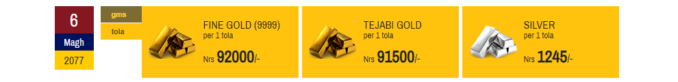 त्यस्तै आज तेजावी सुनको मूल्य ९१ हजार ५ सय रहेको छ ।