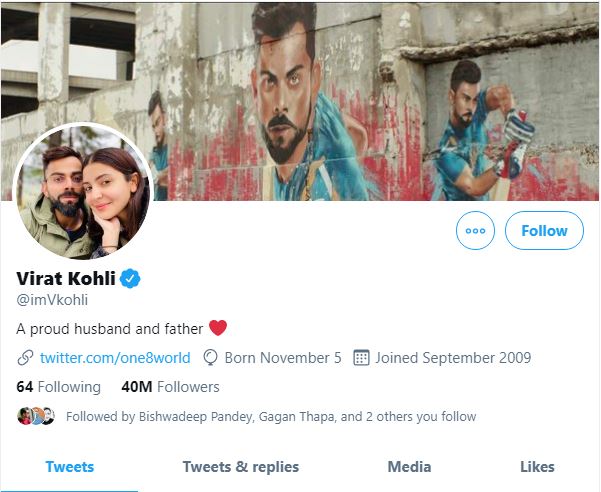 छोरीको जन्मपछि कोहलीले चेन्ज गरे ट्वीटर बायो
