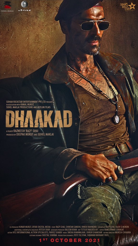 Boom 💥 Evil has a new name- Rudraveer! an antagonist who is dangerous, deadly and cool at the same time! @SohamRockstrEnt's #Dhaakad🔥 in cinemas on 1st October 2021! @KanganaTeam @DeepakMukut @RazyGhai #sohelmaklai @divyadutta25 @castingchhabra @rajiv_gmenon @writish pic.twitter.com/Grjy7uO4FM