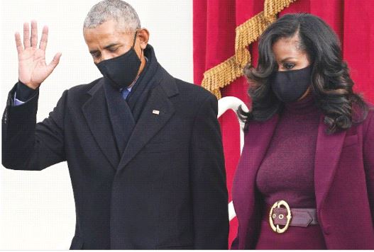पूर्व राष्ट्रपति बराक ओबामा श्रीमती मिशेल ओबामाको साथमा सबैभन्दा पहिला पुगेका थिए ।