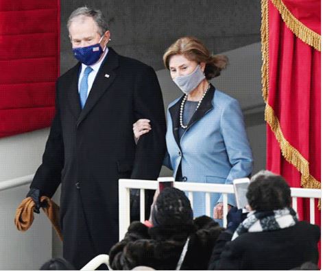 त्यस्तै केहि समयपछि पूर्व राष्ट्रपति जर्ज डब्ल्यू बुश पनि श्रीमती लारा बुशसँगै पुगेका थिए ।
