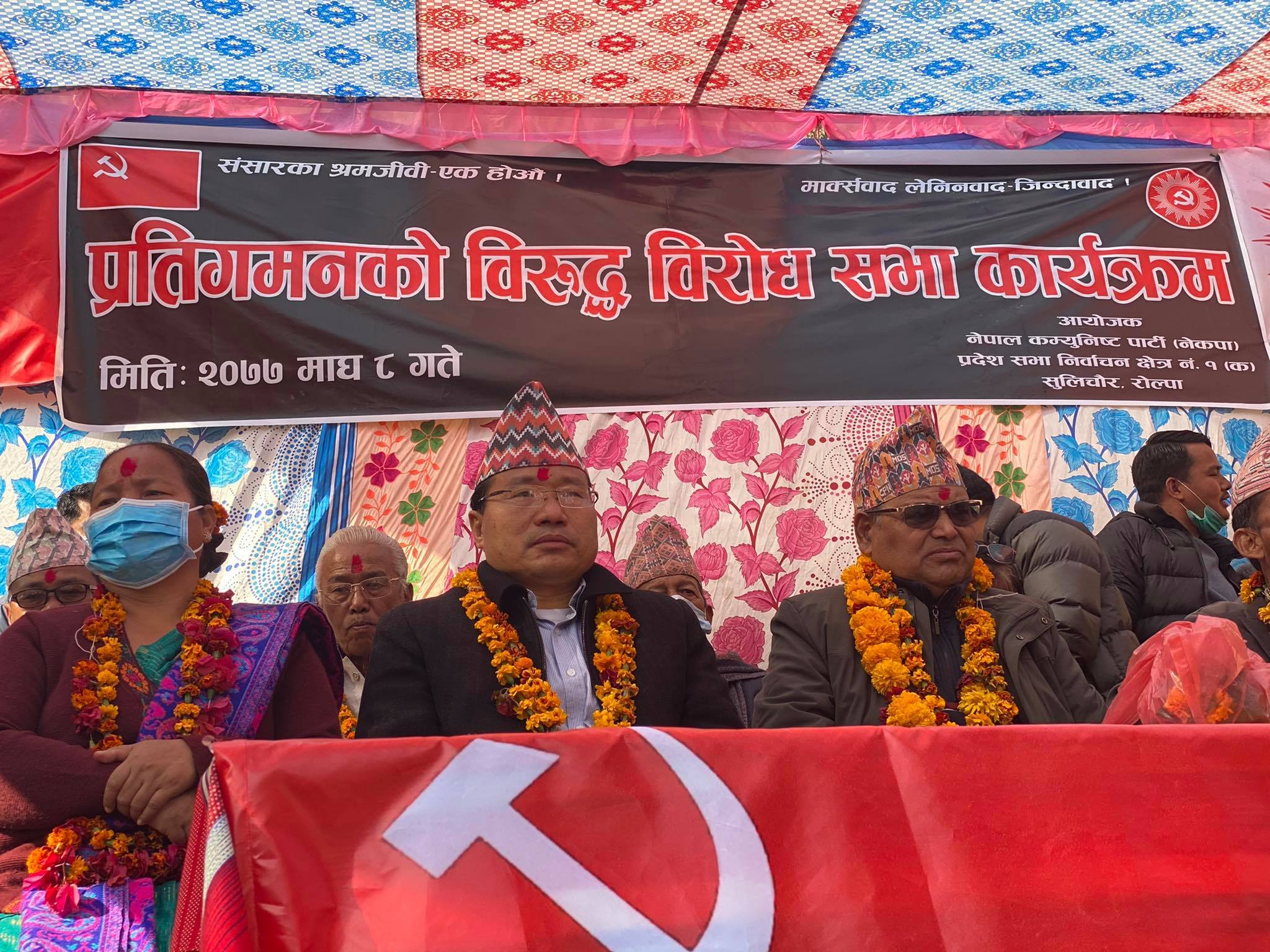 ‘हामीलाई विश्सास छ, संविधानको अक्षर र भावनाअनुसार फैसला आउनेछ । हामी सर्वोच्चको फैसलालाई सम्मान गर्छौ र स्वीकार पनि गर्छौ’, गृहजिल्ला रोल्पाको सुलीचौरमा संसद विघटनविरुद्ध आयोजित विरोध सभालाई सम्बोधन गर्दै पुनले भने, ‘तर, केपी ओली र त्यो प्रवृत्तिका मान्छेले सेटिङका कुरा गरेका छन् । सेटिङ जहिले पनि अलोकतान्त्रि, षड्यन्त्रकारी र जनविरोधी होन्छ, त्यस्ता सेटिङको हामी सडकमा भण्डाफोर गर्छौं । आमजनता उतारेर प्रतिवाद गर्छौं ।’