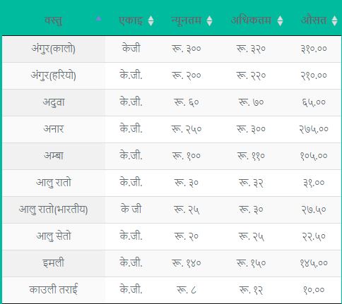 यस्तो छ आजको पुरा मूल्य सूची:
