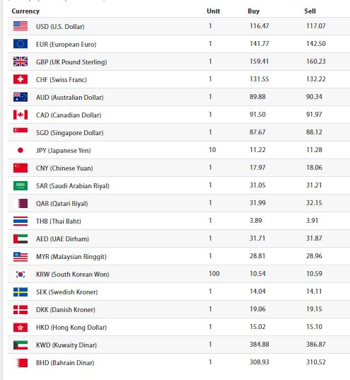 यसैगरी आज पाउण्ड स्टर्लिङ एकको खरिददर १५९ रुपैयाँ ४१ पैसा र बिक्रीदर १६० रुपैयाँ २३ पैसा कायम भई कारोबार भइरहेको छ । आज अन्य विदेशी मुद्राको विनिमयदर यस्तो रहेको छ: