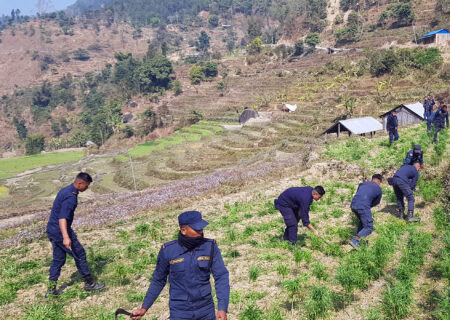 इलाका प्रहरी कार्यालय भीमफेदीका प्रहरी निरीक्षक सुरेन्द्र श्रेष्ठको नेतृत्वमा जिल्ला प्रहरी कार्यालय, प्रहरी गण रातोमाटे र दङ्गा नियन्त्रण प्रहरी गणबाट खटिएको संयुक्त प्रहरी टोलीले गाँजाखेती फँडानी गरी नष्ट गरेको हो ।