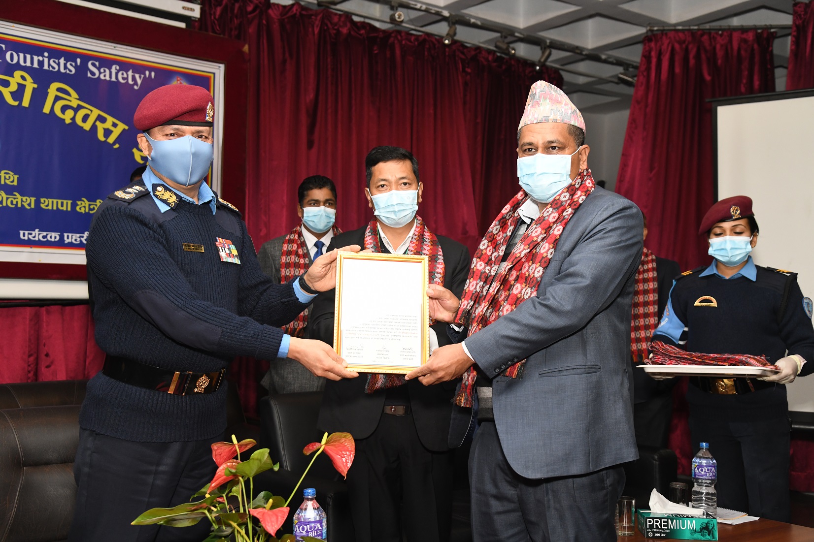 समारोहमा प्रहरी महानिरीक्षक थापा क्षेत्रीले पर्यटक प्रहरीलाई व्यवसायिक रुपमा सहयोग गर्ने विभिन्न संघ संस्था तथा पर्यटन व्यवसायी तथा उत्कृष्ट प्रहरी अधिकृतहरुलाई सम्मानपत्र प्रदान गरे।