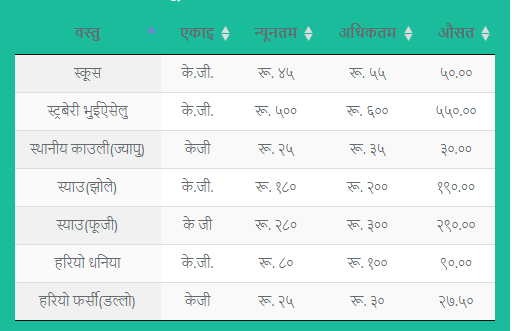 हेर्नुहोस् फलफूल तथा तरकारीको मूल्य