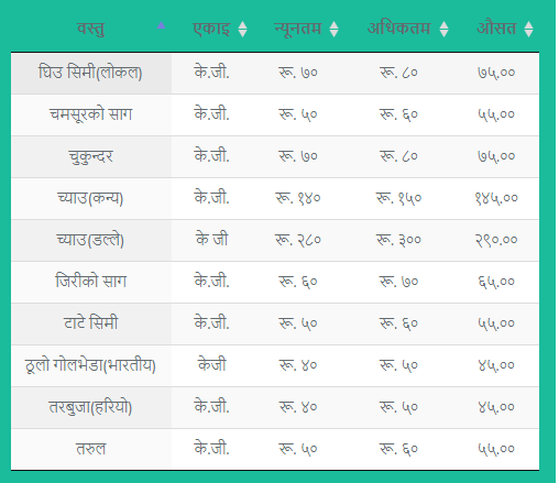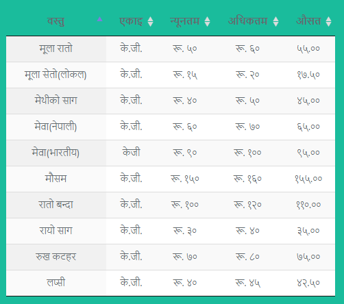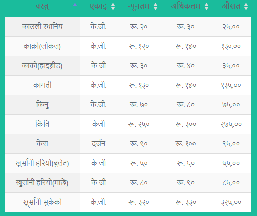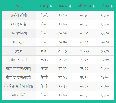 हेर्नुहोस् फलफूल तथा तरकारीको मूल्य