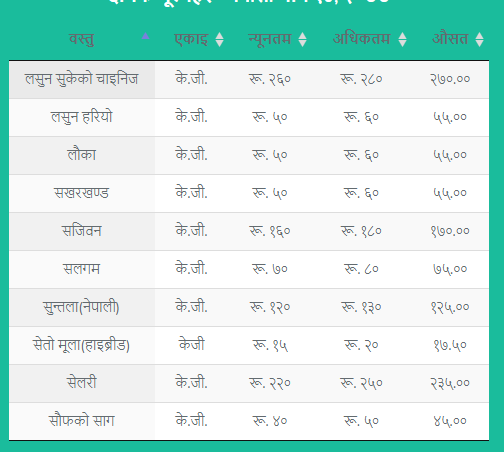 फलफूल तथा तरकारीको मूल्य सार्वजनिक, हेर्नुहोस् कुनको कति ?
