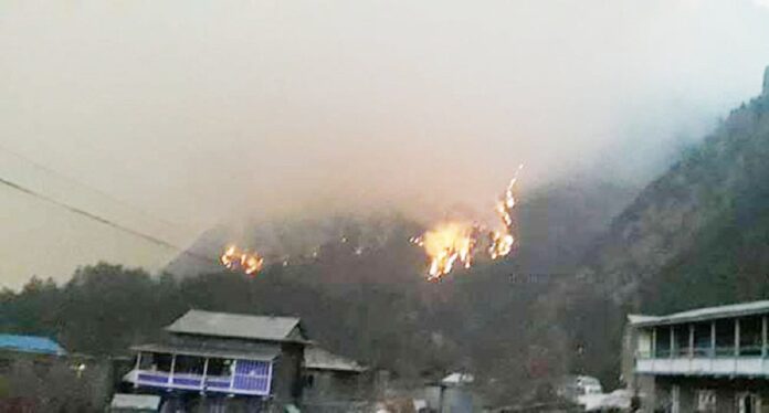 हिमाली जिल्ला भए पनि यसपालि हिउँ तथा पानी नपरेकाले सुकेको निगालोको झाडीमा आगलागी भएको छ । धेरै ठूला रुख नजले पनि साना बुट्यान तथा झाडी जलेको छ । यो समाचार तयार पार्दासम्म एउटा डाँडो पूरै जलिसकेको प्रमुख जिल्ला अधिकारीले जानकारी दिए । भिरालो भौगोलिक बनावटका कारण आगो निभाउन कठिन भएको उनको भनाइ थियो । आगोको लप्का र ढुङ्गा तातेर फुटेर खस्नाले जोखिम मोलेरै भए पनि १०० जनाको टोली आगो निभाउन खटिइरहेको प्रमुख जिल्ला अधिकारी लामिछानेले बताए । उनले भने, “अहिले हामी बस्ती जोगाउने प्रयासमा छौँ, बस्तीभन्दा १०० मिटर टाढा मात्रै आगो छ ।” उनले नयाँ दाउराघाँसको आशले स्थानीयवासीले आगो लगाएको हुनसक्ने आशङ्का व्यक्त गरे ।