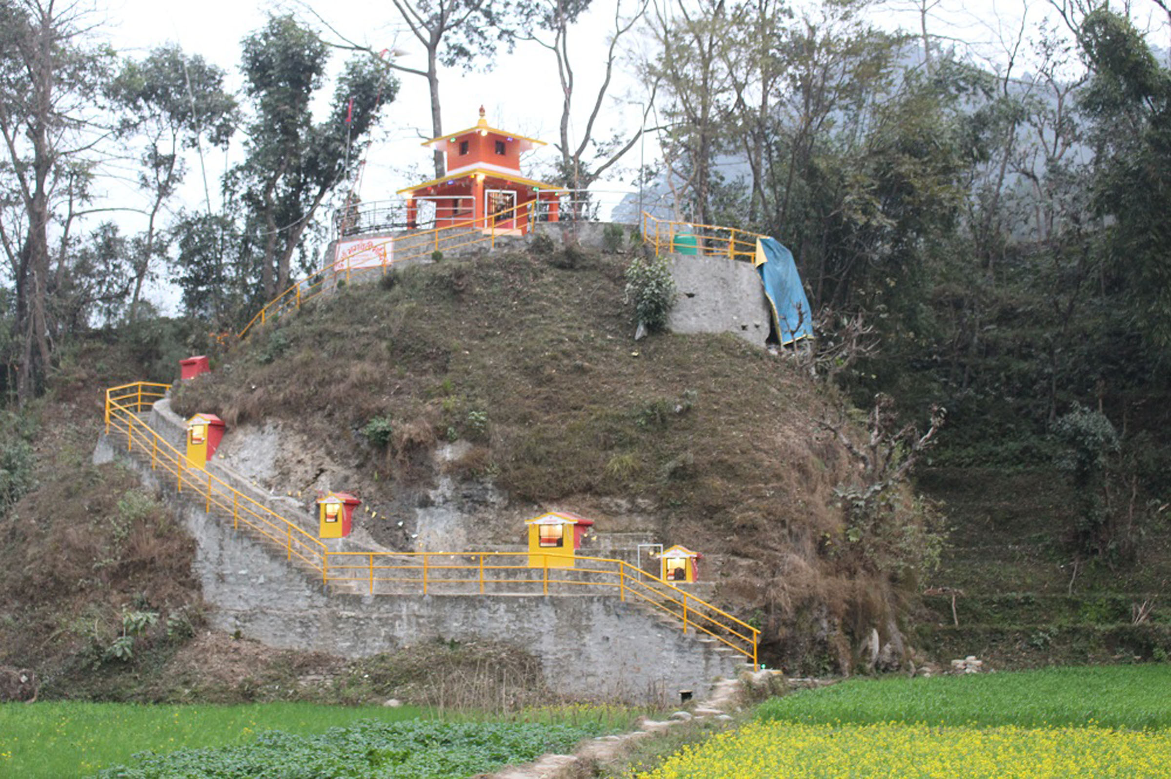 चट्टानको फेदीदेखि शिरमा रहेको मन्दिरसम्म पुग्न दुई तर्फबाट १०० मिटर रेलिङसहितको पक्की पदमार्ग निर्माण भएको छ । पदमार्गको कुनातर्फ भूमे, गणेश, राधाकृष्ण, सीताराम, नाग, महारानी र शिव पार्वतीको मूर्ति राखिएको छ ।
