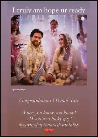 काठमाडौं । हालै मात्र बलिउड अभिनेता वरुण धवनले फेसन डिजाइनर नताशा दलालसँग विवाह गरे । उनको एक पोस्ट अहिले सोसल मिडियामा अत्याधिक भाइरल बनिरहेको छ ।