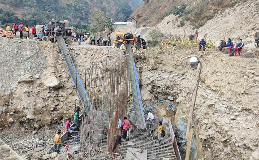रोल्पा । १७ माघ–नेपाल कम्युनिष्ट पार्टी (नेकपा) को विभाजनको असर विकास निर्माणका काममा समेत देखिन थालेको छ । रोल्पामा विकास निर्माणको कामको जस लिन सत्तापक्षले धमाधम निर्माणकार्य भइरहेको पुलको शिलान्यास कार्यक्रम आयोजना गरेको छ ।