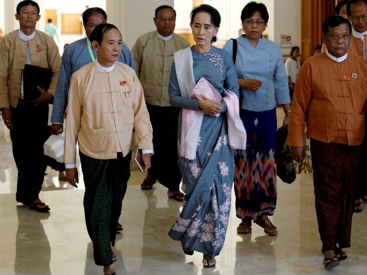 सूकीको पार्टी नेशनल लीग फर डेमोक्रेसी (एनएलडी) ले चुनावमा जित दर्ता गर्यो । संविधानका अनुसार उनी राष्ट्रपतिको चुनाव लड्न सक्दिन थिइन् । त्यसैले उनलाई स्टेट काउन्सलर बनाइयो । संसदमा सेनालाई हेर्नको लागि त्यसको प्रीतनिधि राखियो ।