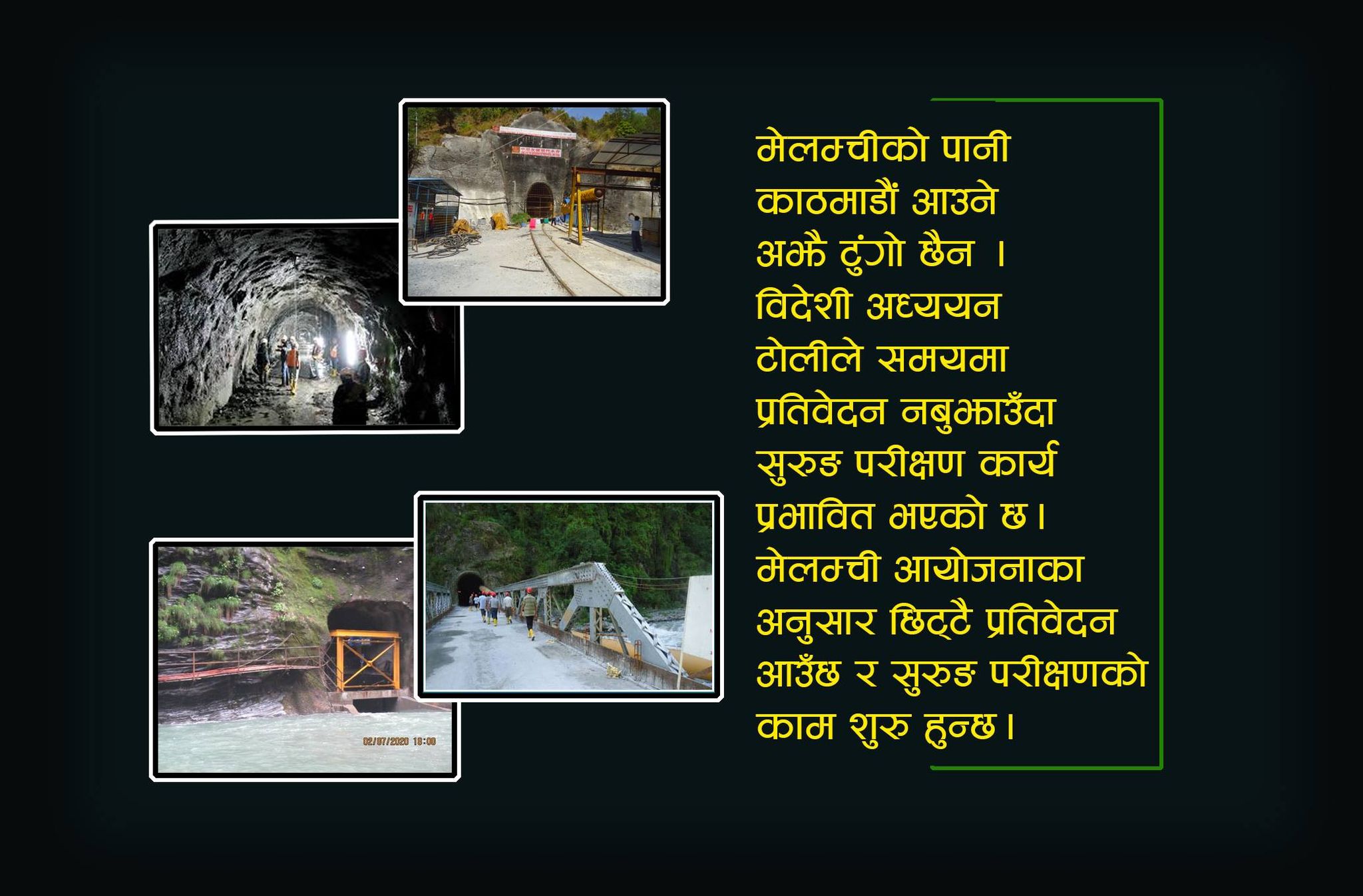 गत वर्ष खाने पानी मन्त्री बिना मगरले कुनै पनि हालतमा आफूले मेलम्चीको पानी ल्याई छाड्ने दाबी गरेकी थिईन् । तर उनले पनि पानी उपत्यका ल्याउन सकिनन् । मगर जस्तै कयौ पटक कयौँ खानेपानी मन्त्री आए गए । तर उनीहरु कसैले पनि काठमडौँका सर्वसाधारणको खानेपानीको समस्या समाधान गर्न सकेनन् । जुनसुकै मन्त्री आएपनि उपत्यकामा मेलम्चीको पानी ल्याएनन् । सर्वसाधारणमाथि सधै खाने पानीका नाममा झेल मात्रै भइरह्यो । आज भोली गर्दै मेलम्चीमा राजनीति गरियो । निर्माणको काम लगभग सबै सम्पन्न भएको छ ।
