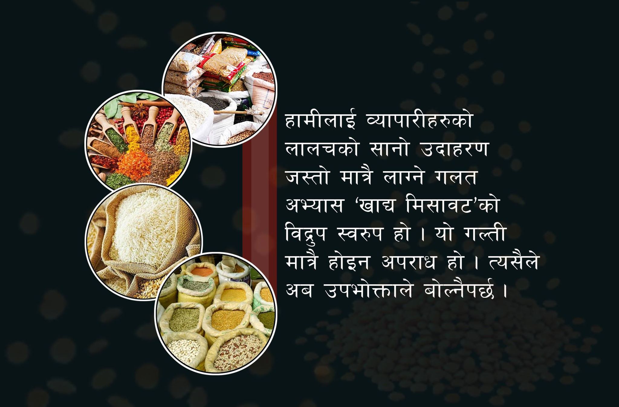 सरकारी निकायले निरन्तर अनुगमन÷नियमन भइरहेको दाबी गरेको छ । यता उपभोक्ताहरु पनि पहिले भन्दा जागरुक भइरहेका छन् । यस्तो हुँदा समेत बजारमा मिसावटको धन्दा कम भएको छैन । आखिर किन ?