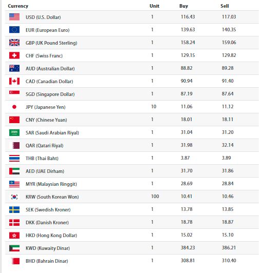 यसैगरी जापानी यन १० को खरिददर ११ रुपैयाँ ६ पैसा र बिक्रीदर ११ रुपैयाँ १२ पैसा तथा कतारी रियाल एकको खरिददर ३१ रुपैयाँ ९८ पैसा र बिक्रीदर ३२ रुपैयाँ १४ पैसा निर्धारण गरिएको छ । अन्य विदेशी मुद्राको विनिमयदर यस्तो रहेको छ: