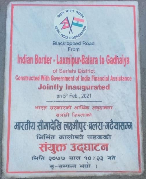 काठमाडौँ– सर्लाहीको बलरा बजार हुँदै गडहियासम्म जोड्ने कालोपत्रे सडकको उद्घाटन भएको छ । नेपालको श्रीकट्टा देवीको मन्दिर छेउबाट भारतीय सीमावर्ती बजार बसभिट्टा नाका छेउसम्मको सडकको उद्घाटन गरिएकोे हो ।