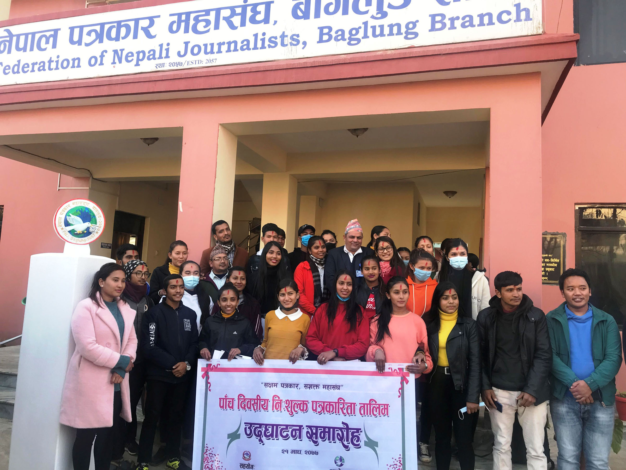 बागलुङ नगरपालिकाको साथ महासंघलाई छ । पाँच दिवसीय निःशुल्क पत्रकारिता तालीममा बागलुङका अनुभवी पत्रकारको प्रशिक्षण लिएका युवायवतीले समापनमा आशाको सन्देश प्रवाह गरे । “केही सिक्छु जस्तै लागेको थिएन, अहिले बोल्ने भोक जागेको छ” तालीमको समापनमा आफ्नो विचार निर्धक्क राखेकी कृतिले भनिन्, “सिकाइको शुरुवात भएको छ ।” कानूनी पेशा र पत्रकारितासँगै गर्ने सोच भएकाले पहिले बोल्न सिकेको उनको भनाइ थियो ।