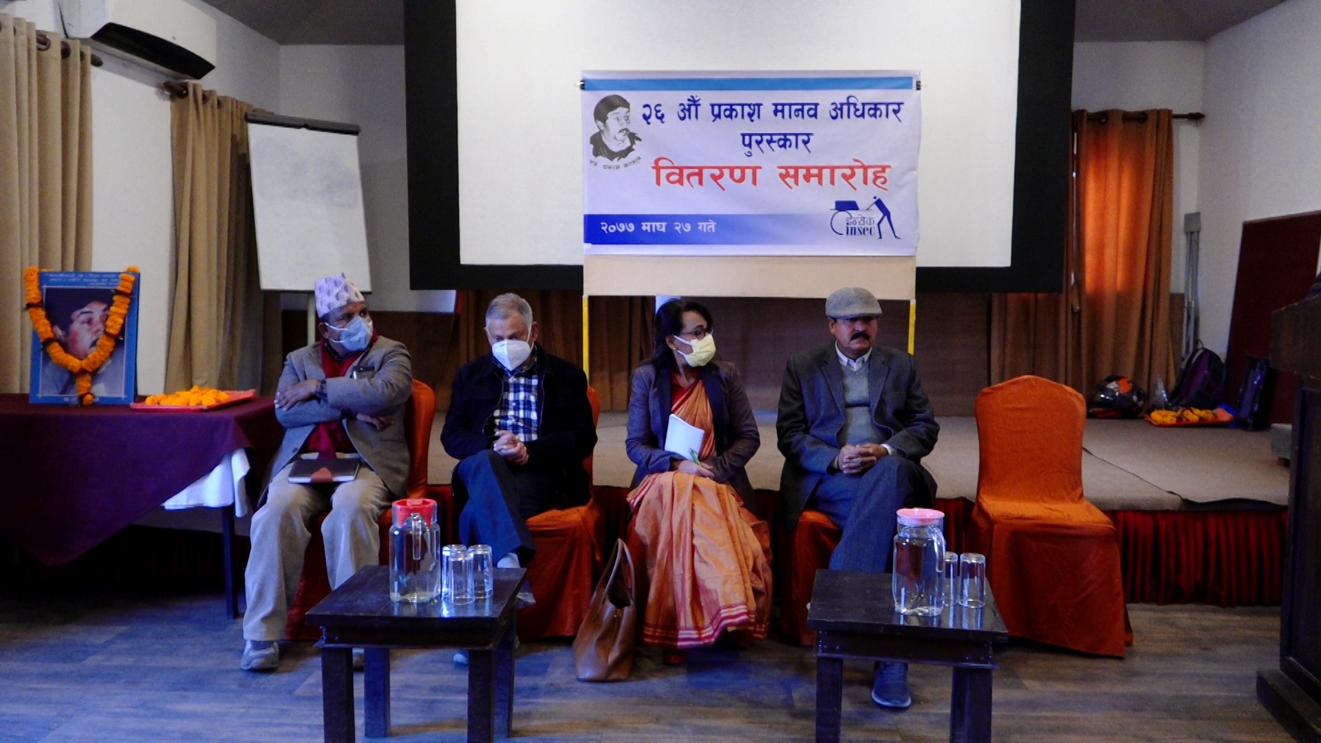आज (मंगलवार) मानवअधिकारवादी योद्धा स्व. प्रकाश काफ्लेको २८ औँ स्मृति दिवसको अवसरमा आयोजित कार्यक्रममा डा. विश्वकर्मालाई २६ औँ मानवअधिकार पुरस्कार २०७६ प्रदान गरिएको हो ।