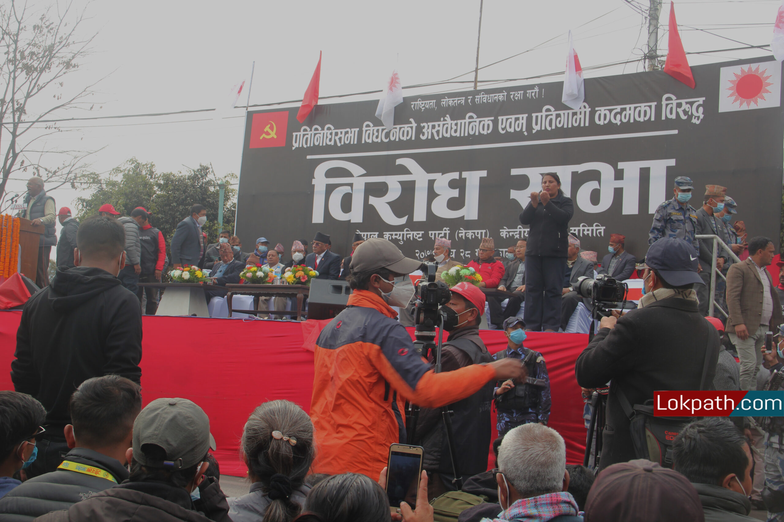 आजको विरोध सभालाई उक्त पक्षका अध्यक्षद्वय पुष्पकमल दाहाल ‘प्रचण्ड’, माधव कुमार नेपाल, बरिष्ठ नेता झलनाथ खनाल, नेता जनार्दन शर्मा लगायतले सम्बोधन गर्ने कार्यक्रम तय भएको बताइएको छ ।
