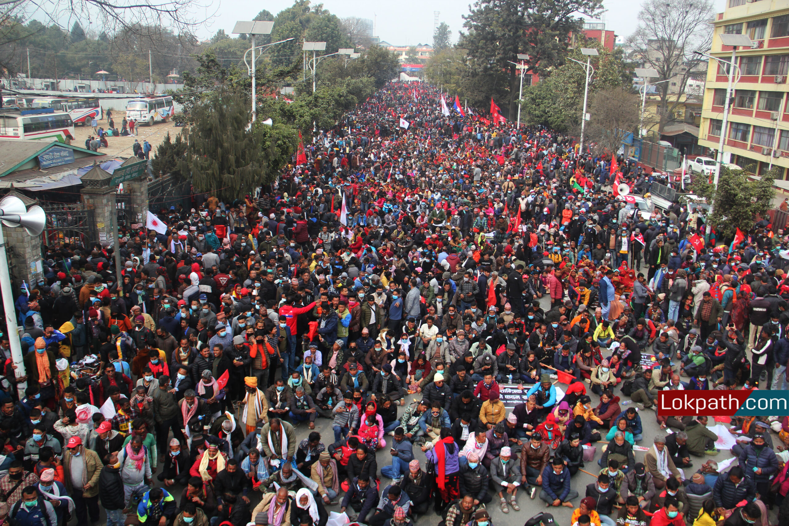 काठमाडौं । संसद विघटनविरुद्ध नेपाल कम्युनिष्ट पार्टी (नेकपा) प्रचण्ड-नेपाल पक्षको जनसभा भृकुटीमण्डपमा शुरु भएको छ ।