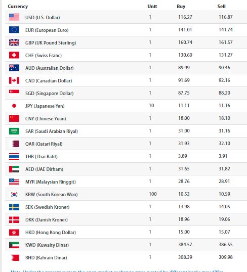 यसैगरी जापानी यन १० को खरिददर ११ रुपैयाँ ११ पैसा र बिक्रीदर ११ रुपैयाँ १६ पैसा तथा कतारी रियाल एकको खरिददर ३१ रुपैयाँ ९३ पैसा र बिक्रीदर ३२ रुपैयाँ १० पैसा निर्धारण गरिएको राष्ट्र बैंकले जनाएको छ ।