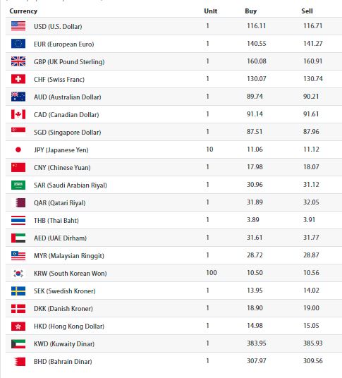 काठमाडौं । नेपाल राष्ट्र बैंकले आज आइतवारका लागि विदेशी मुद्राको विनिमयदर सार्वजनिक गरेको छ । सार्वजनिक दरअनुसार आज अमेरिकी डलर एकको खरिददर ११६ रुपैयाँ ११ पैसा र बिक्रीदर ११६ रुपैयाँ ७१ पैसा तोकिएको छ ।