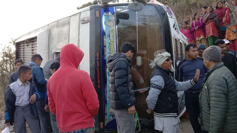 बसमा सदरमुकाम मन्थलीमा राष्ट्रपति रनिङ शिल्ड प्रतियोगितामा सहभागी हुन जाँदै गर्दा दुर्घटनामा परेको हो । प्रहरी निरीक्षक श्रेष्ठका अनुसार तीव्र गतिका कारण साइड दिन नमिल्दा बस सडकमै पल्टिएको थियो ।