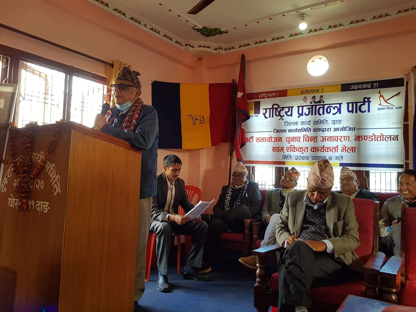 ‘यस परिवेशमा संविधान भित्रको राजसंस्था र सर्वधर्म समभाव सहितको हिन्दुराष्ट्रको साथर्कता पहिलेभन्दा पनि जरुरी भएको छ । यसबारे छलफल र विचार गर्नुपर्छ भन्ने पुर्वप्रधानमन्त्री डा. बाबुराम भट्टराईको हालैको भनाइलाई सबै पक्षले सकारात्मक रुपमा लिनु पर्दछ,’ उनले शुक्रवार कार्यकर्ता भेलालाई सम्बोधन गर्दै भने ।